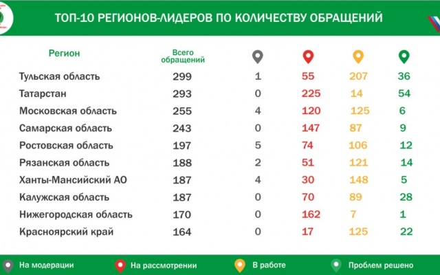 Также эксперты ОНФ оставили ТОП-10 регионов-лидеров по количеству обращений. Лидер – Тульская область, где почти 300 свалок, отмеченных на kartasvalok.ru