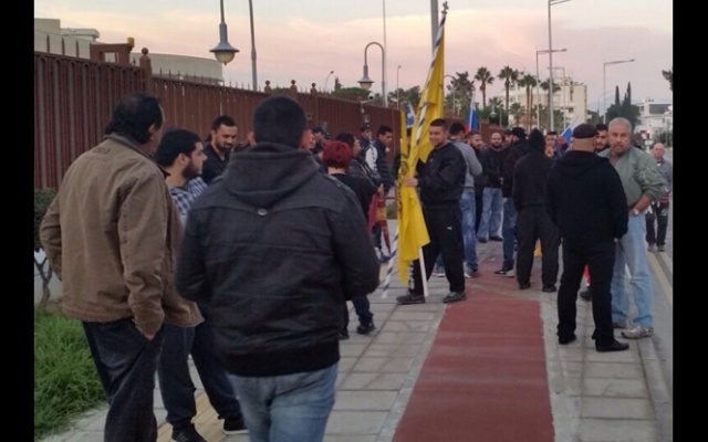 На митинге выступили лидер партии E.LA.M. Христос Христу, глава столичного отделения партии Жорж Хаджиоану, руководитель региональной организации фронта в Пафосе Петрос Кундурешус, другие соратники.
