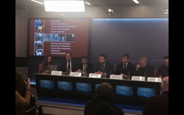 В Москве, в Международном мультимедийном пресс-центре МИА "Россия сегодня" началась пресс-конференция на тему: "Военные преступления украинских силовиков: пытки и бесчеловечное обращение с жителями Юго-Востока". На ней представлен одноименный доклад, подготовленный Фондом исследования проблем демократии при содействии Комитета общественной поддержки жителей Юго-Востока Украины.