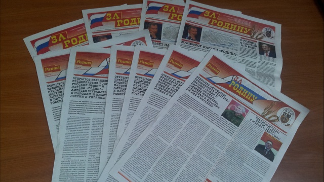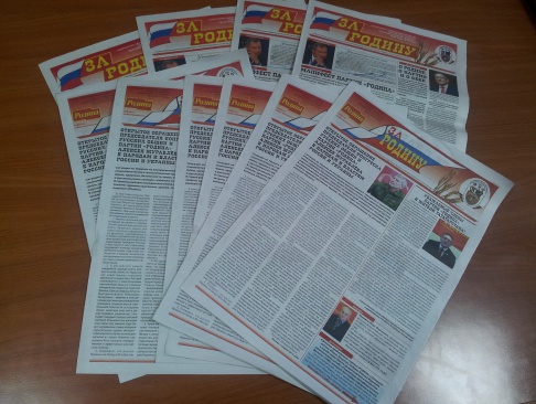Региональное отделение партии "РОДИНА" в республике Татарстан выпустило очередной тираж газеты "За Родину".
